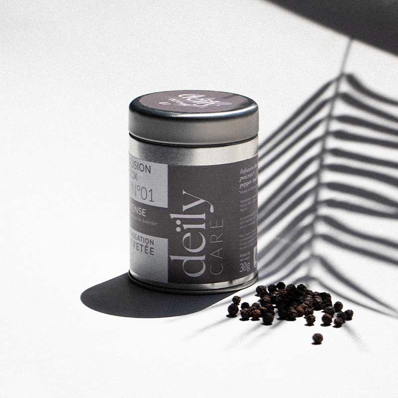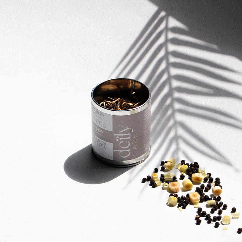 Nos infusions détox vous accompagnent tous les jours pour renforcer naturellement votre système immunitaire. A partir de l'inflorescence de poivrier, nos infusions aux formulations brevetées visent à maximiser les bienfaits détoxifiants et santé de leurs ingrédients. La Pipérine, un alcaloïde présent dans le poivre de Kampot, est connue pour ses propriétés bénéfiques pour la santé, notamment l'amélioration de l'absorption des nutriments et ses effets antioxydants. Découvrez notre gamme de 6 infusions qui répondent chacune à un besoin précis.